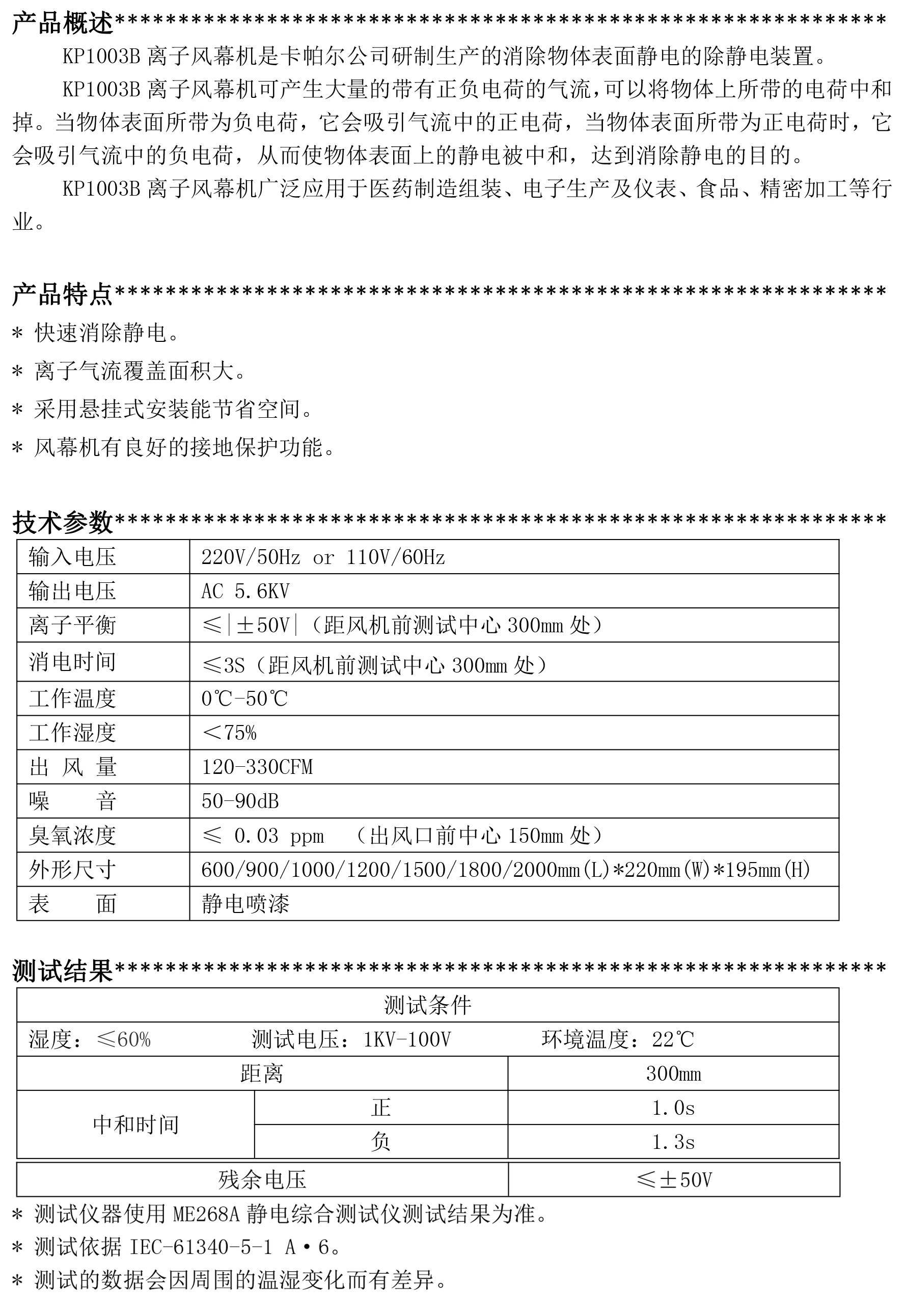 KP1003B第三代離子風幕機