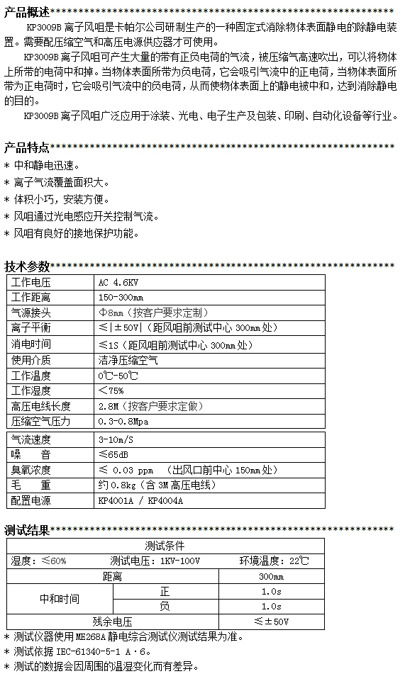 KP3009B第三代感應式離子風咀