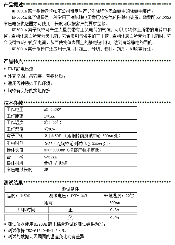 KP5001A第三代離子銅棒