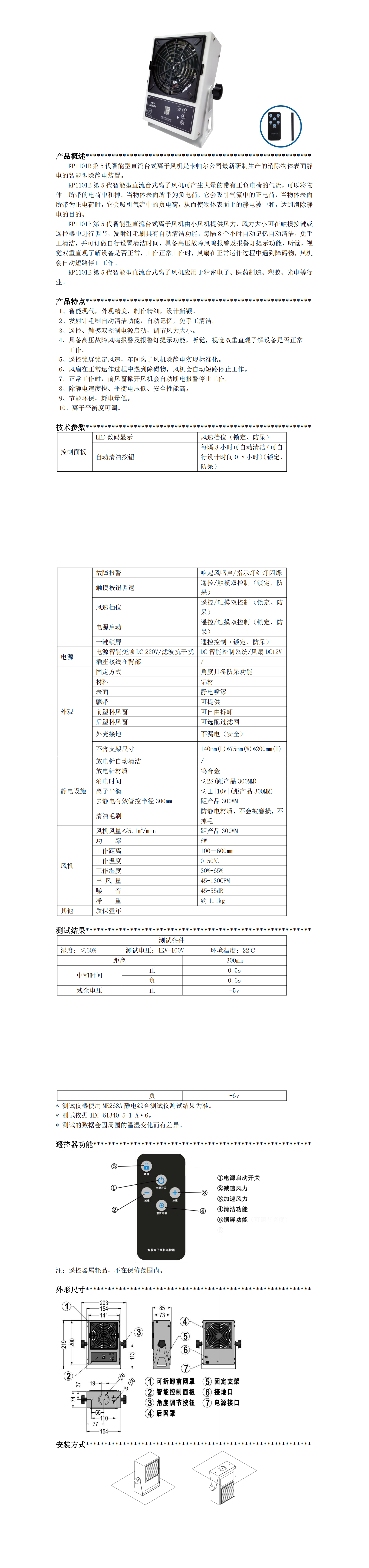 KP1101B 第 5 代智能型直流臺式離子風機