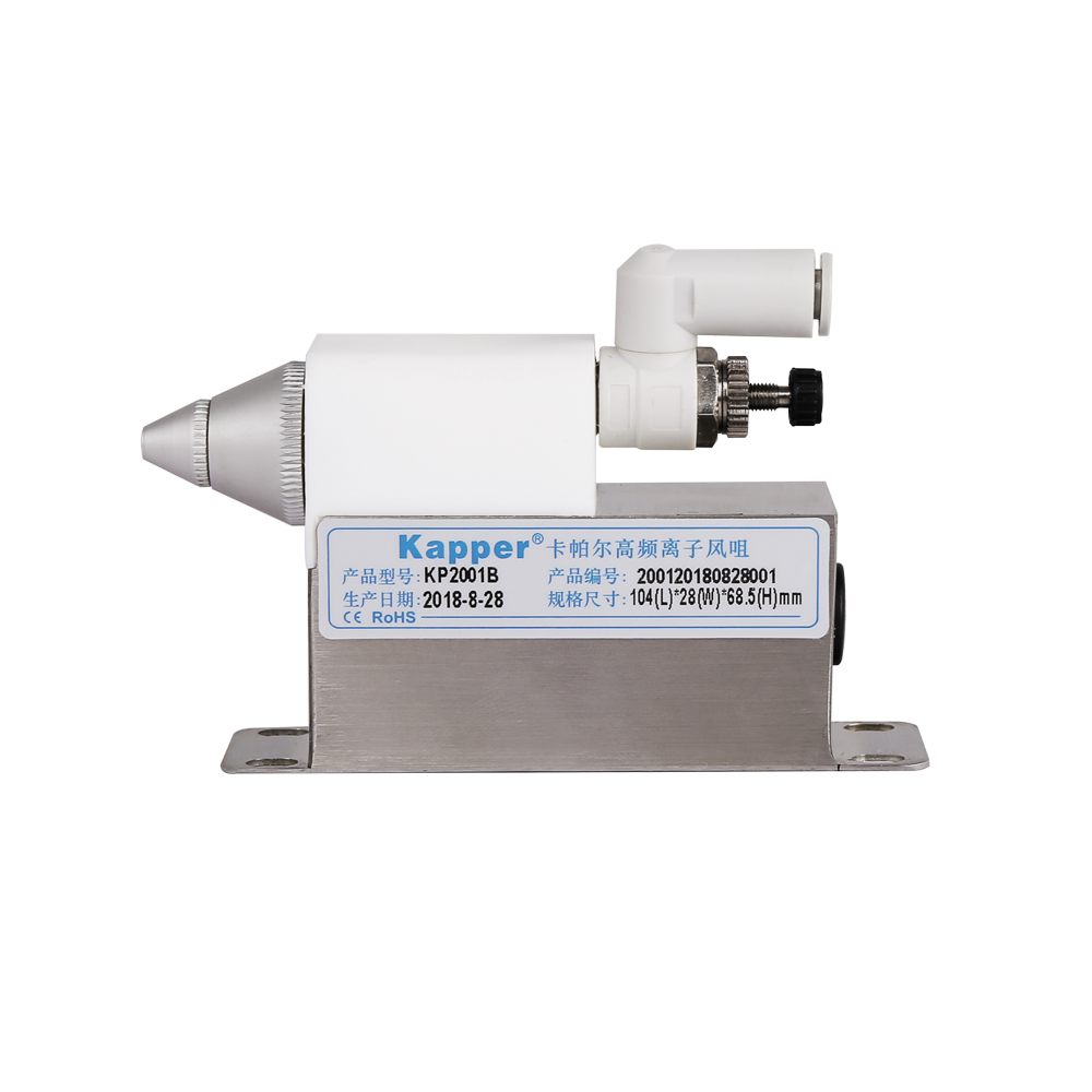 • KP2001B高頻離子風咀是卡帕爾公司研制生產的一種固定式消除物體表面靜電及灰塵的除靜電裝置。需要配壓縮空氣才可使用。