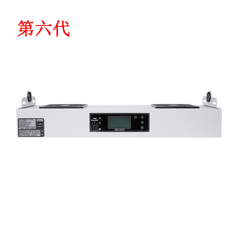KP102C第六代智能型懸掛式雙頭離子風機由小風機提供風力,風力大小可在觸摸按鍵或遙控器中進行調節。