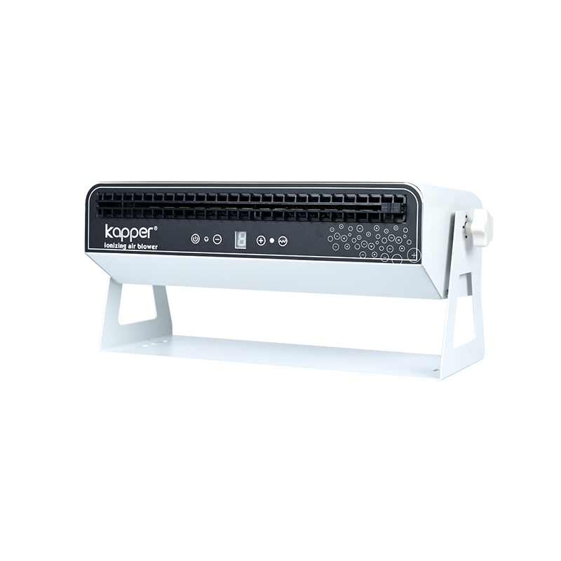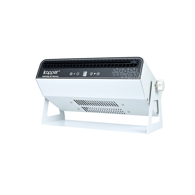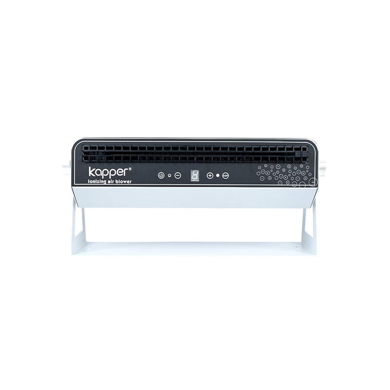 KP104B第5代智能型臥式離子風機可產生大量的帶有正負電荷的氣流,可以將物體上所帶的電荷中和掉。當物體表面所帶為負電荷,它會吸引氣流中的正電荷,當物體表面所帶為正電荷時,它會吸引氣流中的負電荷,從而使物體表面上的靜電被中和,達到消除靜電的目的。